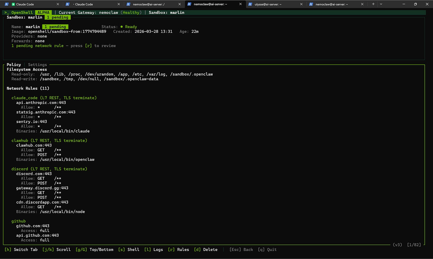 By the way, NVIDIA called their sandboxing engine OpenShell (in computing, a shell is the layer that sits between you and the system and controls what gets through). For a platform whose mascot is a lobster, it couldn’t be more fitting. 🦞